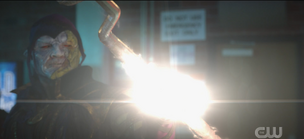 Cindy realizes Eclipso tricked her and tries to attack him. Eclipso grabs Cindy's wrists, and sneers that they used each other. He tears out one of Cindy's blades from her wrist and throws it at Isaac Bowin, impaling him in the stomach, then throws Cindy against the wall. Eclipso approaches Isaac and relished in the impurities that he senses. Eclipso then absorbs Isaac's soul, turning his body into ash. Cindy gets back up, and demands Eclipso remember that she's the only reason he's here. She threatens that she should have kept him in the box she found him and starts to attack. Eclipso causally throws a piece of the shattered diamond at Cindy's feet, and it opens a black portal that pulls Cindy into it. The Shade antagonizes and attacks Eclipso, who walks through Shade's shadow wall, angrily reminding Shade that his powers come from Eclipso's homeland. He impales Shade with his claws, calling him human, before throwing him aside into the air. Shade teleports away as a result. Stargirl then attacks Eclipso with the Cosmic staff. He grabs hold of the staff and while it appears to hurt him, he drains the staff of its light and pushes Courtney to the ground. Eclipso then runs out into the night in an animalistic way, disappearing once he's outdoors. As he stalks the streets of Blue Valley, Eclipso feels the impurities around him. He then transforms into the ten-year-old form of Bruce Gordon as he stands on main street, holding his arms out as he laughs creepily.[10]