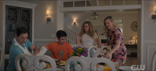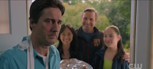 At home, Pat, Barbara, and Mike are setting the table for dinner. Jennie made it home, and Sylvester is setting up to live in the basement. Courtney comes in and says that things are back to normal, and Barbara mentions that the house next door sold. The doorbell rings, and Pat goes to answer it. It's the Crocks, who brought muffins.